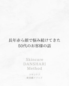 こんにちは、スキンセラピスト吉田純子です。 長年赤ら顔で悩んできたお客様のお話です。 赤ら顔は体質的に出やすい方もいらっしゃいますし、環境や生活習慣などが原因となっている場合もあります。 寒暖差で赤くなる方は多いですが、ホルモンバランスが影 …